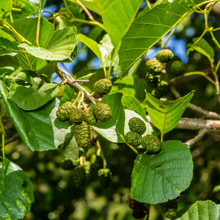 Alder hedging (Alnus glutinosa) is a distinctive plant that thrives in wet or poor-quality soils. It attracts a wide variety of native birds and insects making it a valuable choice for supporting wildlife year-round.
