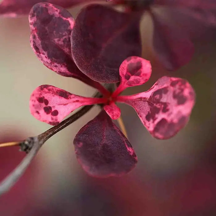Barberry 'Rose Glow' is an attractive ornamental compact hedging plant that features striking purple, pink, and cream variegated foliage. This is truly a stunning plant that will bring colour and warmth to your creative outdoor space.