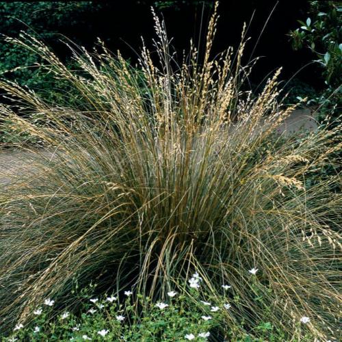Seasonal Colour: The foliage of Bronze Veil Tufted Hair Grass changes from vibrant green in the spring to a warm, rich bronze in late summer and autumn. This colour shift provides lasting interest and texture, making it an attractive addition to the garden through multiple seasons.