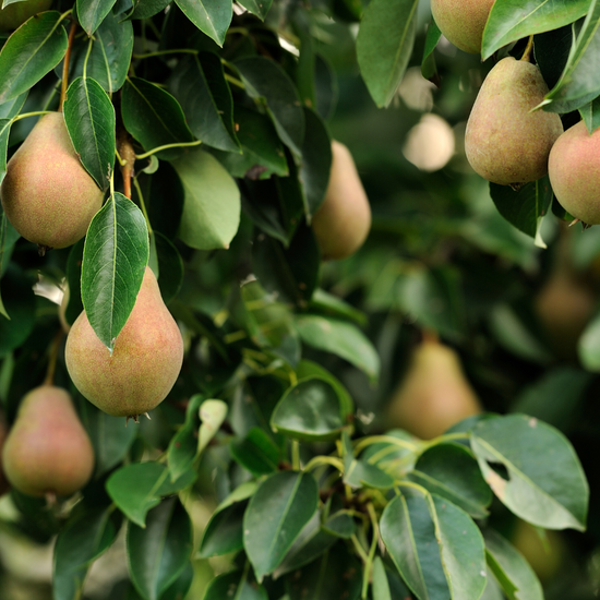 The Clapp's Favourite pear tree is a popular cultivar known for its sweet, juicy fruit and beautiful, fragrant blossoms. This semi-dwarf tree typically reaches heights of 15 to 20 feet and features a rounded canopy. It produces medium to large, yellowish-green pears with a smooth texture and a rich, buttery flavour.