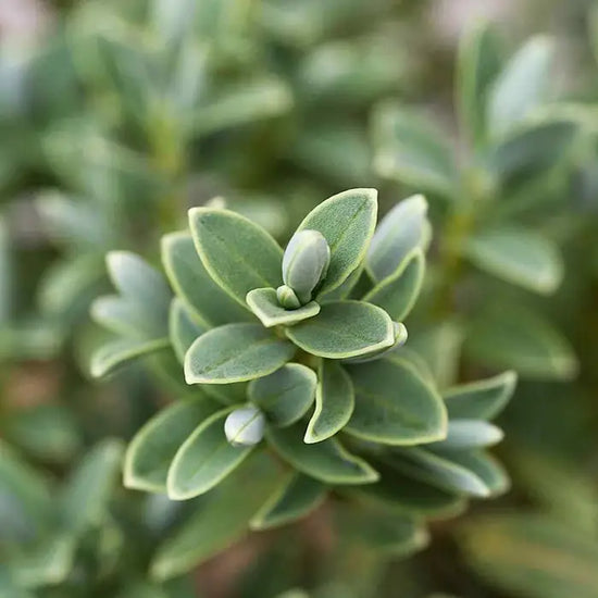 Hebe Sutherlandii is an ideal choice for an informal flowering hedge. This hardy evergreen is tolerant of salt-laden winds, thereby making it ideal for coastal gardens. In late summer it is adorned with delicate white flowers on long spikes which beautifully contrast with its neat grey-green foliage and purple stems.