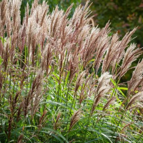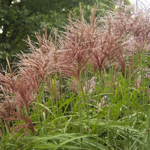 Malepartus Maiden Grass is a tall, elegant ornamental grass with arching green leaves that develop coppery red flower plumes in late summer.
