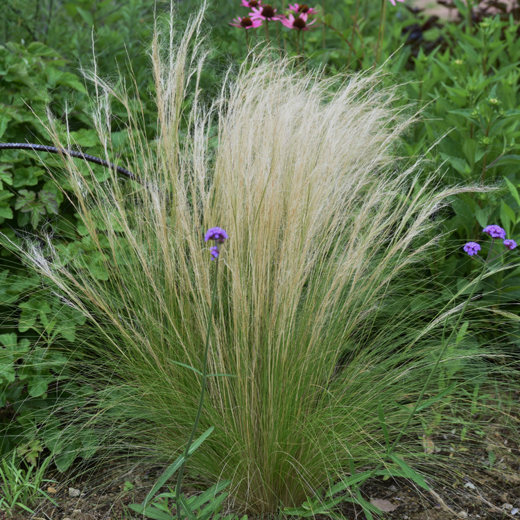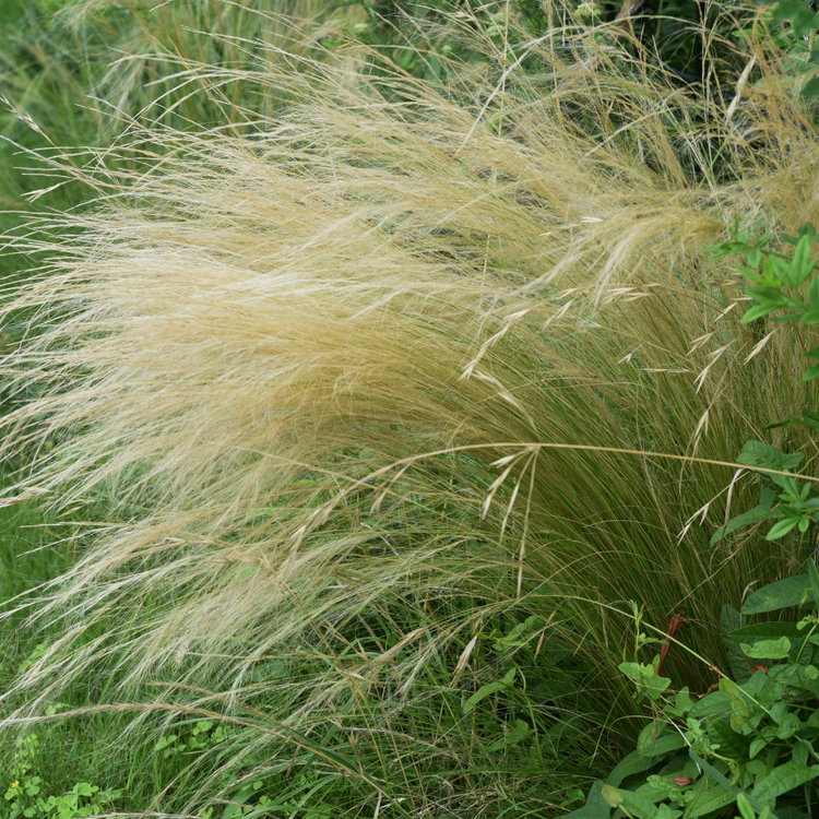 Mexican Feather Grass is a graceful ornamental grass prized for its fine, wispy foliage and delicate, feathery flower heads.