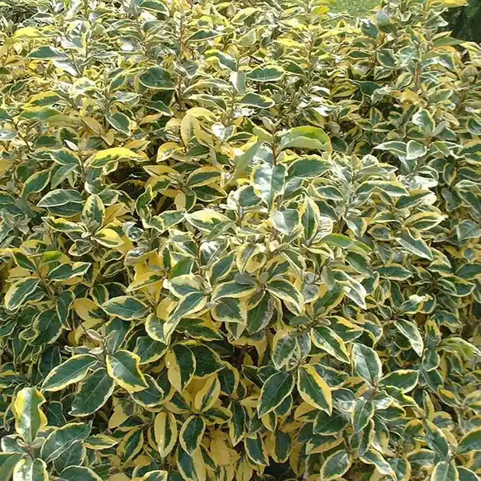 The Oleaster Gilt Edge hedge plant is perfect for adding colour to shady areas, thanks to its vibrant yellow-edged leaves. In autumn, it produces beautifully fragrant creamy white flowers, enhancing both the appearance and scent of your garden.