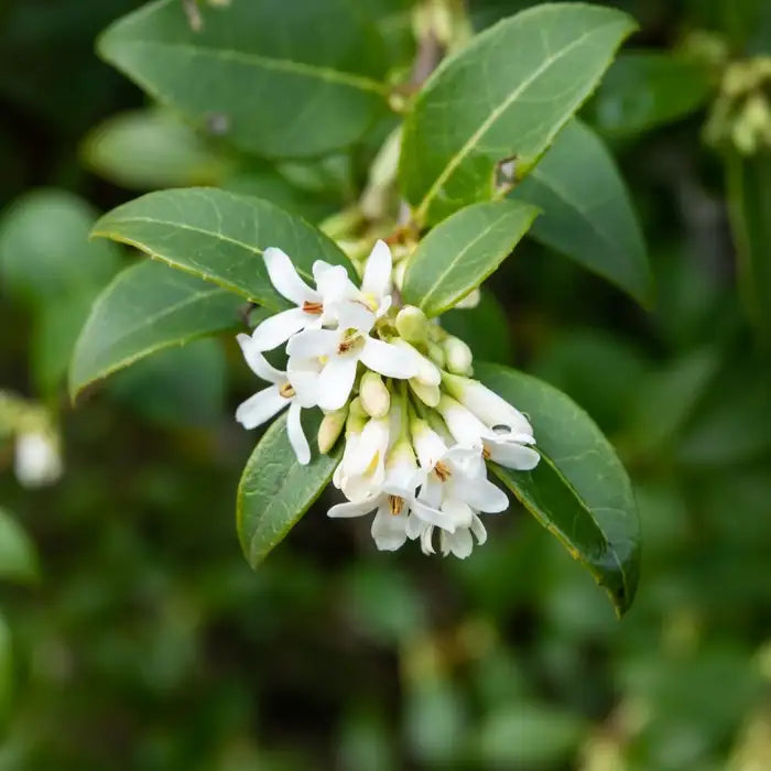 Osmanthus burkwoodii is a slow growing evergreen shrub with pretty clusters of small, highly scented flowers coming to bloom during summer.