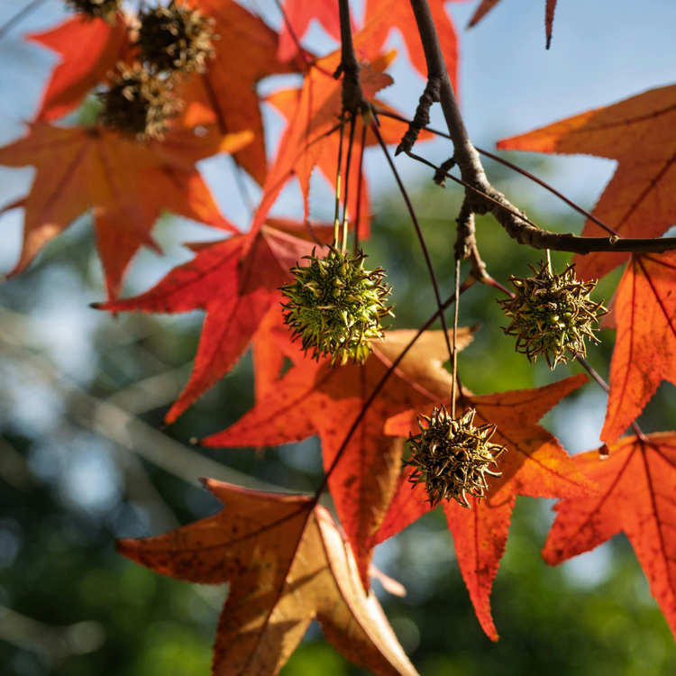 - Sun: The Sweetgum tree grows best in full sun for at least 6 hours a day. Full sun helps the tree produce its vibrant autumn colours and ensures robust growth. While it can tolerate some partial shade, it may not display the same level of vibrant foliage or grow as vigorously in shaded conditions.